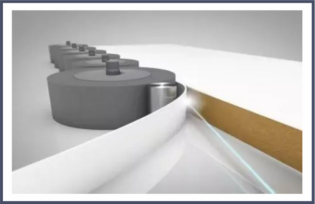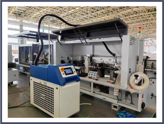 激光封邊: 通過將高能量的激光束聚合到激光封邊帶上, 高能量的激光快速融化封邊帶 的功能層, 然后通過壓輪機(jī)構(gòu), 將邊帶壓緊在工件上, 再經(jīng)過截斷、初修、精修、跟蹤倒圓 等工序,從而實(shí)現(xiàn)封邊的目的。